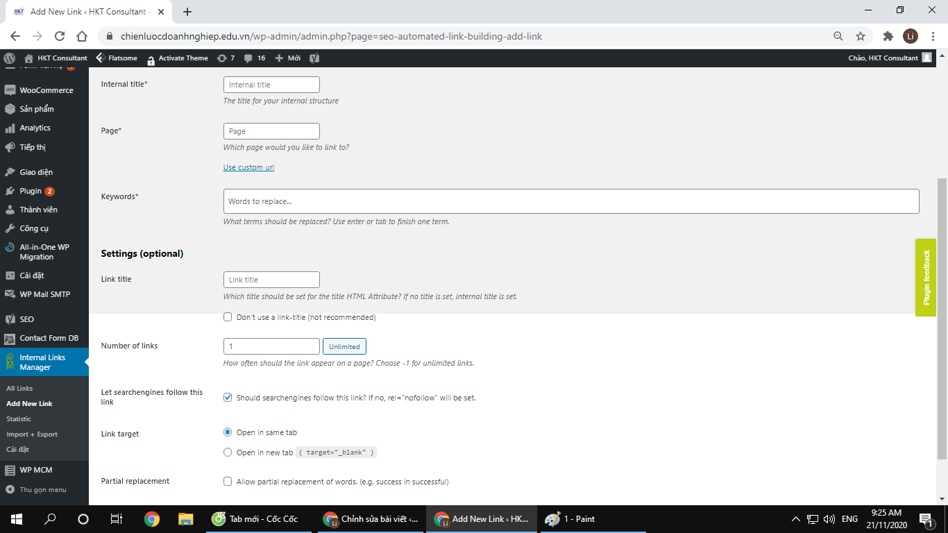 Hướng dẫn sử dụng plugin Internal Links Manager