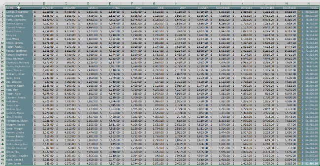 Trong ví dụ, chúng tôi sẽ in bản ghi cho 40 nhân viên bán hàng đứng đầu ở bảng tính trung tâm.