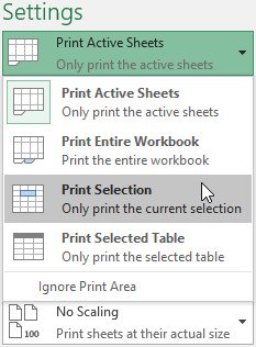 3. Chọn Print Selection từ trình đơn thả xuống Print Range.