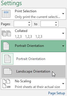 2. Chọn hướng mong muốn từ trình đơn thả xuống Page Orientation. Trong ví dụ, chúng tôi sẽ chọn Landscape Orientation (Định hướng phong cảnh).