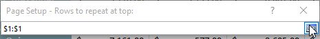 3. Nhấp vào nút Collapse Dialog bên cạnh trường Rows to repeat at top: (Các dòng lặp lại ở đầu:).