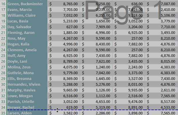 4. Trong ví dụ, tất cả các trang bây giờ hiển thị cùng một số hàng do thay đổi trong ngắt trang.
