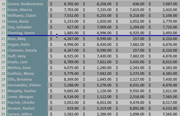 3. Trong ví dụ, chúng tôi đã đặt ngắt trang nằm ngang giữa hàng 21 và hàng 22.