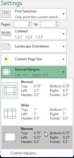 Lề là khoảng trống giữa nội dung và cạnh của trang. Đôi khi, bạn cần phải điều chỉnh lề để dữ liệu hiển thị dễ đọc hơn. Bạn có thể sửa đổi lề trang từ ngăn In.