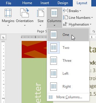 Để bỏ định dạng cột vừa tạo, đặt trỏ chuột tại bất kì vị trí nào trong bảng, sau đó chọn Columns trên tab Layout và chọn One.
