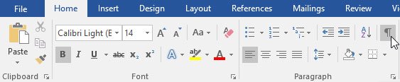 Bước 1: Mặc định, lựa chọn ngắt cột sẽ bị ẩn. Nếu muốn chúng hiển thị, bạn cần click Show/Hide trên thẻ Home của Word.