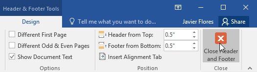 Bước 5: Khi hoàn thành, click Close Header and Footer hoặc nhấn phím Esc.
