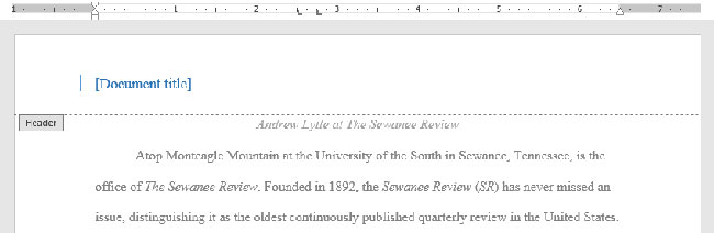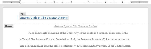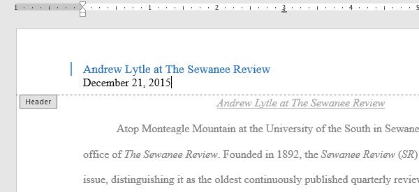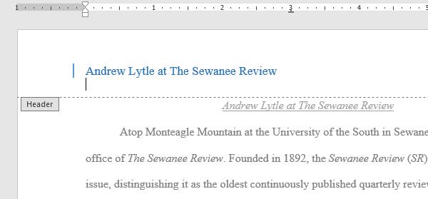 Trong ví dụ dưới đây, chúng ta sẽ thêm tên tác giả trên đầu mỗi trang văn bản trong tiêu đề trang.