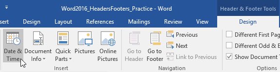 Bước 2: Trên thẻ Design, click Date & Time