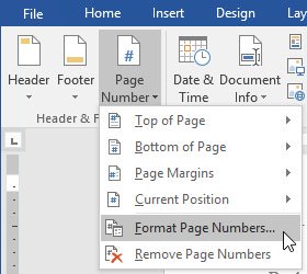 Bước 5: Click Page Number và chọn Format Page Numbers trong danh sách hiện ra.