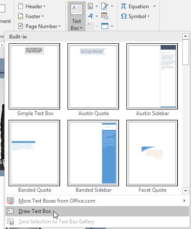 Bước 2: Trong menu hiện ra, nhấp chọn Draw Text Box.