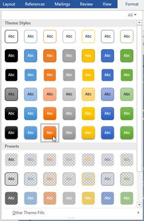 Việc chọn một kiểu hình dạng cho phép bạn áp dụng các màu và hiệu ứng để nhanh chóng thay đổi sự xuất hiện của hộp Text Box.