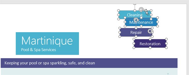 Bước 3: Các đối tượng sẽ được sắp xếp lại. Trong ví dụ này, hình ảnh hiện ở phía sau văn bản bên trái nhưng vẫn che phủ các hình dạng ở phía bên phải.