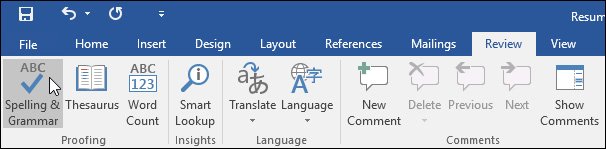 Chạy trình kiểm tra chính tả và ngữ pháp (Spelling and Grammar check)