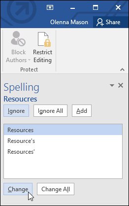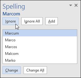 - Ignore All: Tùy chọn này sẽ bỏ qua từ mà không thay đổi từ gốc và nó cũng sẽ bỏ qua tất cả các trường hợp khác trong tài liệu của bạn.