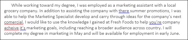 - Đường màu đỏ chỉ một từ sai lỗi chính tả.