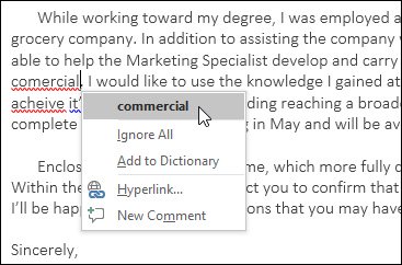 Nhấp chuột phải vào từ được gạch chân, sau đó chọn từ in đậm được gọi ý trong danh sách đề xuất.