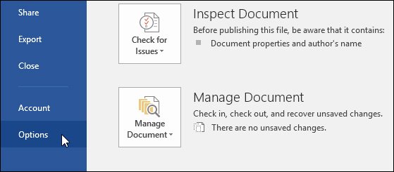 Nhấp vào tab File, sau đó chọn Options.