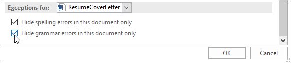 Bước 2: Một hộp thoại sẽ hiện ra, hãy nhấp chọn Proofing, sau đó tích vào ô bên cạnh Hide spelling errors in this document only và Hide grammar errors in this document only. Cuối cùng, nhấp chọn OK.