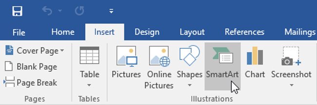 2. Từ tab Insert (Chèn), chọn lệnh SmartArt trong nhóm Illustrations (Minh họa).