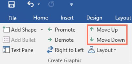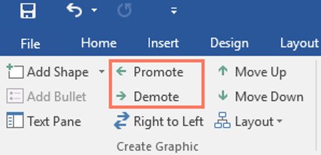 Nếu bạn không muốn sử dụng khung văn bản để tổ chức SmartArt của mình, bạn có thể sử dụng các lệnh trên tab Design (Thiết kế) trong nhóm Create Graphic. Chỉ cần chọn hình bạn muốn sửa đổi, sau đó chọn lệnh mong muốn.