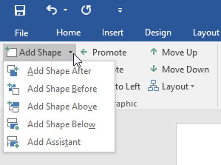 - Add Shape (Thêm hình dạng): Sử dụng lệnh này để thêm một hình dạng mới cho đồ hoạ của bạn. Bạn cũng có thể nhấp vào mũi tên thả xuống để có các tùy chọn vị trí chính xác hơn.