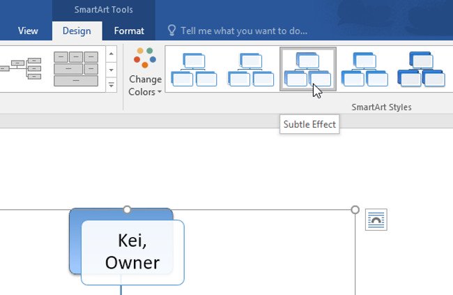 - Có một số kiểu SmartArt, cho phép bạn nhanh chóng sửa đổi giao diện SmartArt của mình. Để thay đổi kiểu dáng, hãy chọn kiểu bạn muốn từ nhóm SmartArt styles.