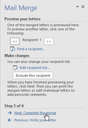 6. Khi hoàn tất, hãy nhấp vào Next: Preview your letters (Tiếp theo: Xem trước thư của bạn) để chuyển sang Bước 5.