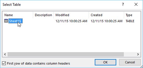3. Nếu danh sách địa chỉ nằm trong một bảng tính Excel, hãy chọn bảng tính chứa danh sách rồi nhấp OK.