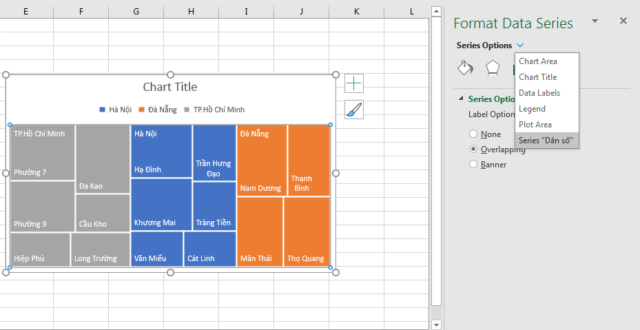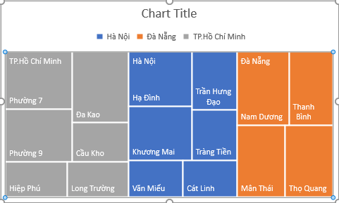 Vậy là ta đã có được 1 biểu đồ treemap. Điểm khác biệt so với Sunburst chart ở đây đó là treemap không thể hiện tất cả các cấp bậc dữ liệu mà chỉ có thể biểu hiện giá trị của cấp dữ liệu cuối cùng trên bảng tổng thể.