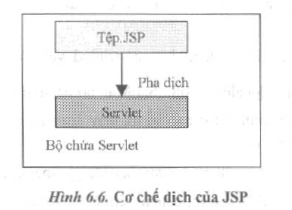Một cách điển hình, các trang JSP là chủ điểm chính của pha dịch và xử lý các yêu cầu trên Server. Pha dịch chỉ thực hiện môi lần, trừ khi trang JSP bị thay đổi thì nó mới phải dịch lại. Giả sử về mặt cú pháp, trang JSP không có lỗi thì kết quả của pha dịch sẽ là tệp lớp cài đặt trang JSP và giao diện. Servlet như hình dưới :