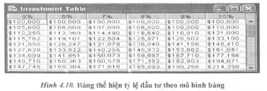 Ví dụ 4.6. Xây dựng bàng thê hiện đuợc lợi nhuận đâu tư thu được hàng năm theo tỳ lệ