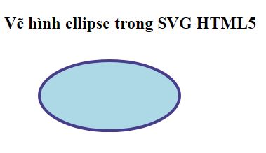 <!DOCTYPE html><html><body><h2>Vẽ hình ellipse trong SVG HTML5</h2><svg width="300" height="300"><ellipse cx="150" cy="70" rx="100" ry="50"stroke="darkslateblue" stroke-width="4" fill="lightblue" /></svg></body></html>