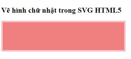 <!DOCTYPE html><html><body><h2>Vẽ hình chữ nhật trong SVG HTML5</h2><svg width="400" height="100"><rect width="400" height="100"style="fill:lightcoral;stroke-width:10;stroke:pink" /></svg></body></html>