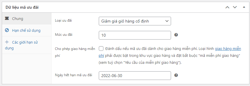 - Cho phép giao hàng miễn phí: ưu đãi áp dụng cho việc miễn phí giao hàng.