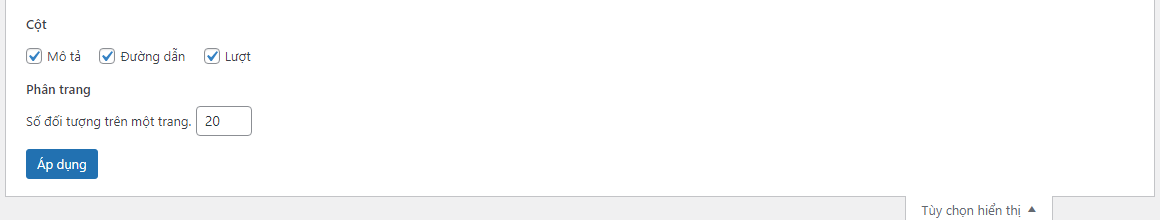 Nếu bạn có nhiều danh mục, hãy nhớ rằng trong Tùy chọn màn hình ở trên cùng, bạn có thể thay đổi số lượng hiển thị cùng một lúc. (Mặc định là 20)