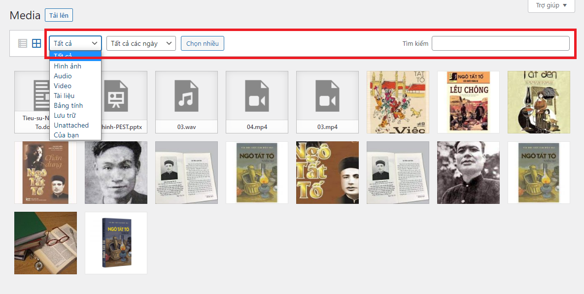 Tiếp đến là menu thả xuống để lọc các tệp đa phương tiện theo một tháng hoặc một năm nhất định.