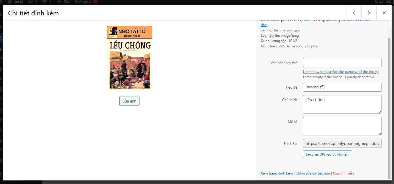 Bạn Click vào “Chỉnh sửa” sẽ đưa bạn đến cửa sổ “Chỉnh sửa phương tiện”. Ở đây bạn sẽ chỉnh sửa các thông tin của tệp, sau đó Click nút “Cập nhật” để lưu những thay đổi. Nếu bạn muốn xóa file thì Click vào nút “Xóa vĩnh viễn”.