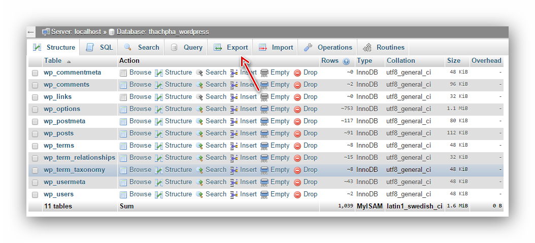 Để backup database, bạn truy cập vào phần phpMyAdmin trên host.