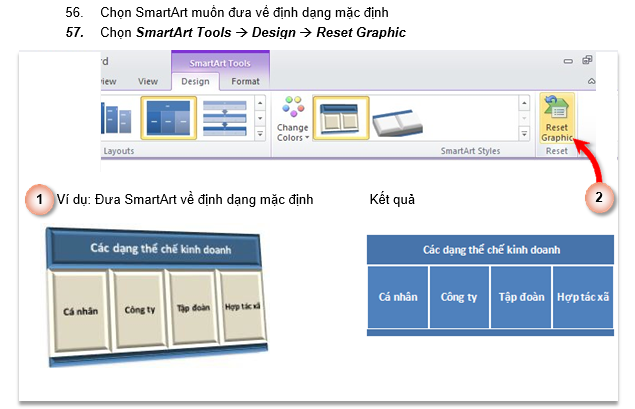 d. Reset Graphic – đưa SmartArt về định dạng mặc định
