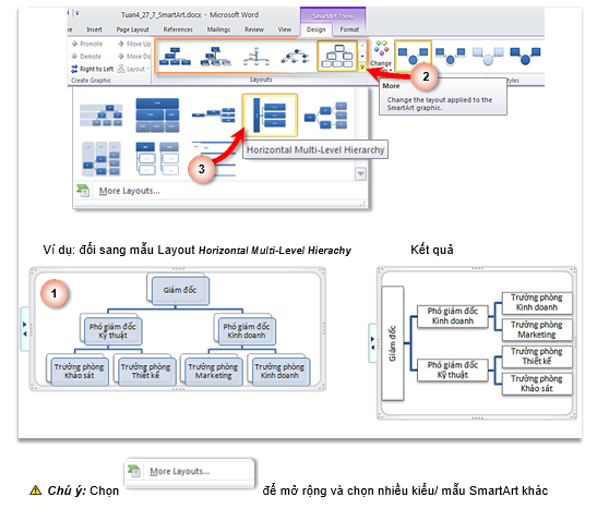 - Chọn SmartArt muốn đổi Layout (mẫu) mới
