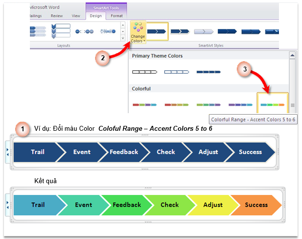 SmartArt có những bộ màu định dạng để chọn thay cho màu mặc định ban đầu
