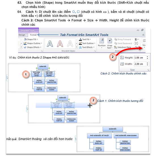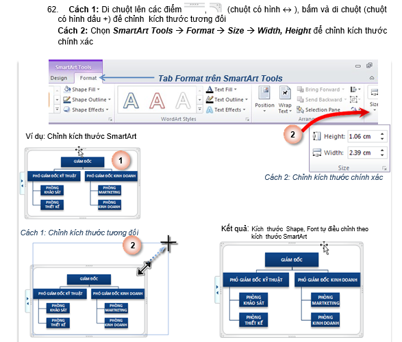 1. Chỉnh kích thước SmartArt và các Shape trong SmartArt