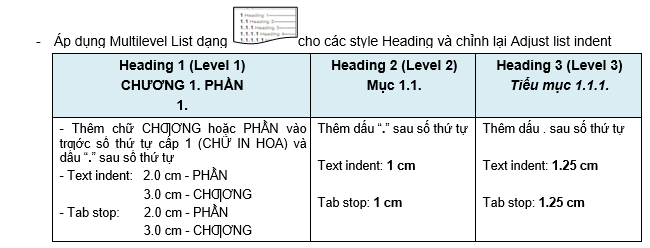 + Thay thế chữ Tiểu mục bằng style HEADING 3