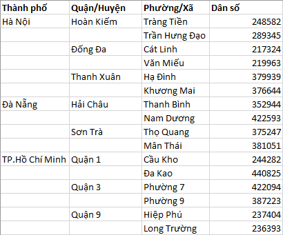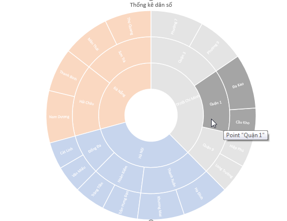Bằng cách click vào từng vùng dữ liệu, ta có thể làm nổi bật vùng dữ liệu đó lên. Chẳng hạn để chỉ ra dữ liệu của “Quận 1”, ta chỉ cần click vào vùng dữ liệu.