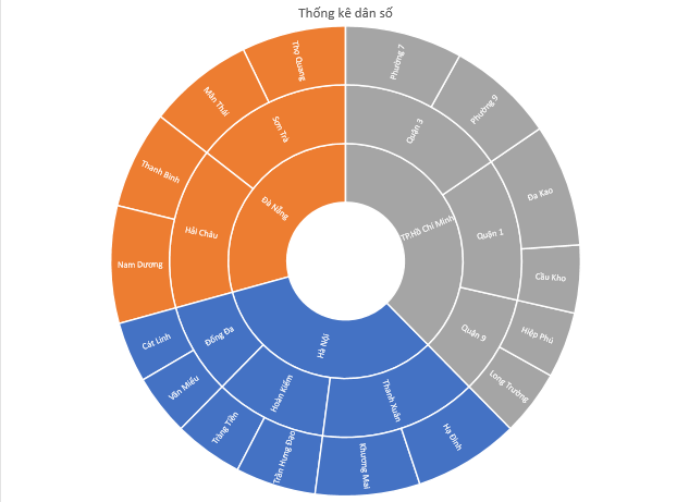 Sunburst chart được tạo ra sẽ có hình dạng như thế này: