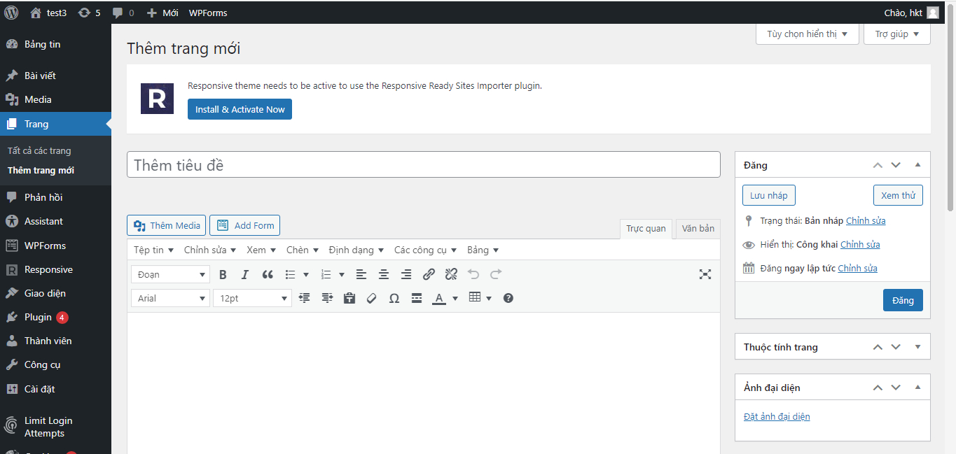 Sau đó, bạn sẽ được chuyển hướng đến giao diện thêm trang mới của WordPress.