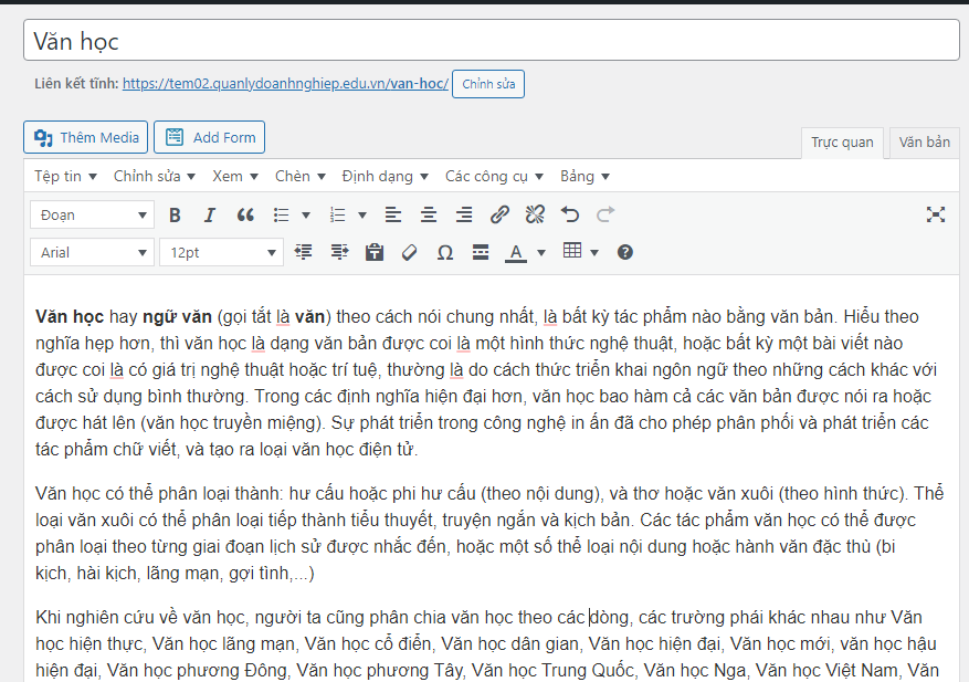 - Trong vùng soạn thảo của Trang không có các mục lựa chọn chuyên mục, thẻ tag, ngược lại thì Bài viết lại có đầy đủ những lựa chọn đó.