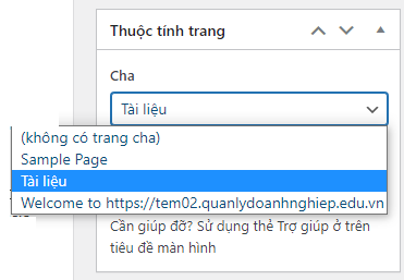 - Ở khối ‘Thuộc tính Cha’, Chọn tên Cha nếu muốn. Nếu bạn không chọn Cha thì bỏ qua bước này.