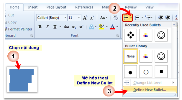 - Xuất hiện hộp thoại Define New Bullet (xem hình dưới):